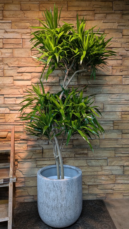 ドラセナは熱帯アジア、熱帯アフリカにおよそ50種類が分布する常緑性の樹木です。「ナビー」はまだあまり見かけない新しい品種で、リフレクサに似た葉でコンシンネのようなスマートな樹形が特徴です。
