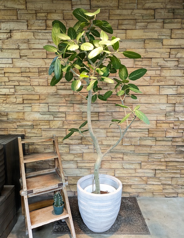 フィカス・ベンガレンシスは現地では長寿の木として崇められていてとても生命力の強い植物です。幹から出てくる木根はどんどん地面に達して横に広がり大きく成長します。上品で落ち着いた雰囲気があり、贈り物としても人気の高い観葉植物です。 ゴムの木の仲間で育てやすく、室内にも寒さにも強い観葉植物。個性的な樹形が美しくリビングにも映えるグリーンです。