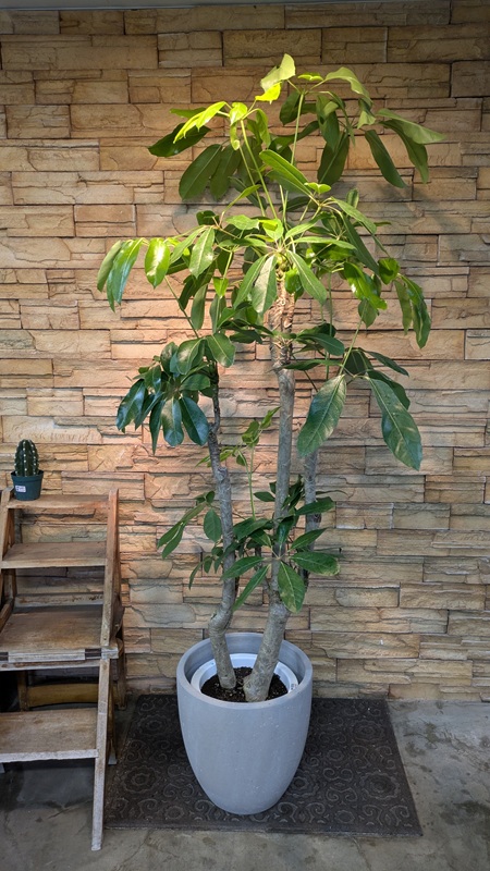 ブラッサイアは、太い幹と大きめの葉が放射状に広がりボリューム感たっぷりです。「オクトパスツリー」や「アンブレラツリー」とも呼ばれています。寒さにも強く丈夫な植物ですが流通量が少なく、希少性の高い植物です。