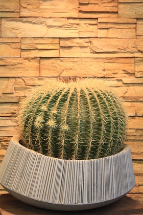 サボテンの王様と呼ばれる金鯱(キンシャチ)は自生地であるメキシコのダム建設や乱獲によって絶滅危惧種のレッドリストに指定されている、「絶滅寸前」のサボテンでもあります。非常に大きくなり高さは最大で1メートル以上にもなります。20年以上経つと花を咲かせます。※予め陶器鉢に植え込んであります。