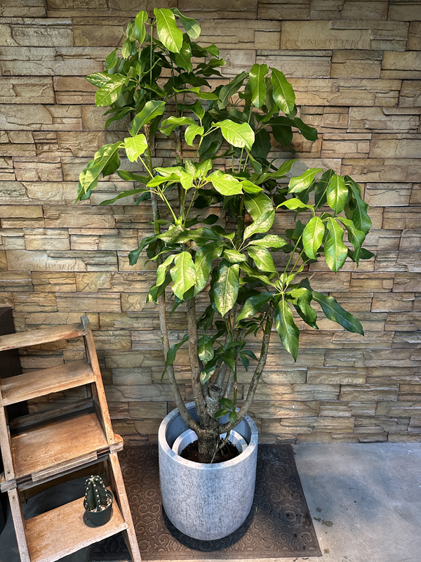 ブラッサイアは、太い幹と大きめの葉が放射状に広がりボリューム感たっぷりです。「オクトパスツリー」や「アンブレラツリー」とも呼ばれています。寒さにも強く丈夫な植物ですが流通量が少なく、希少性の高い植物です。