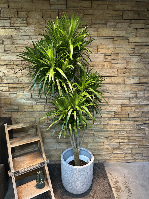 ドラセナは熱帯アジア、熱帯アフリカにおよそ50種類が分布する常緑性の樹木です。「ナビー」はまだあまり見かけない新しい品種で、リフレクサに似た葉でコンシンネのようなスマートな樹形が特徴です。