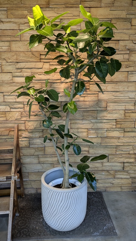 フィカス・アルテシマの原種です。本来は葉に斑が入っていない光沢のあるグリーンの葉っぱです。流通しているアルテシマは葉に黄色の鮮やかな斑が入っているものが多く、本来のアルテシマとは異なります。