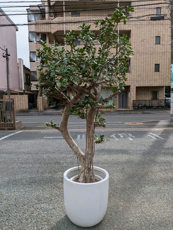 一般的なガジュマルとは違い、肉厚で丸みを帯びた少し大きめの葉が特徴です。日本ではまだ流通量が少なく、珍しい観葉植物です。樹形も変わった物が多く、とても人気の観葉植物です。