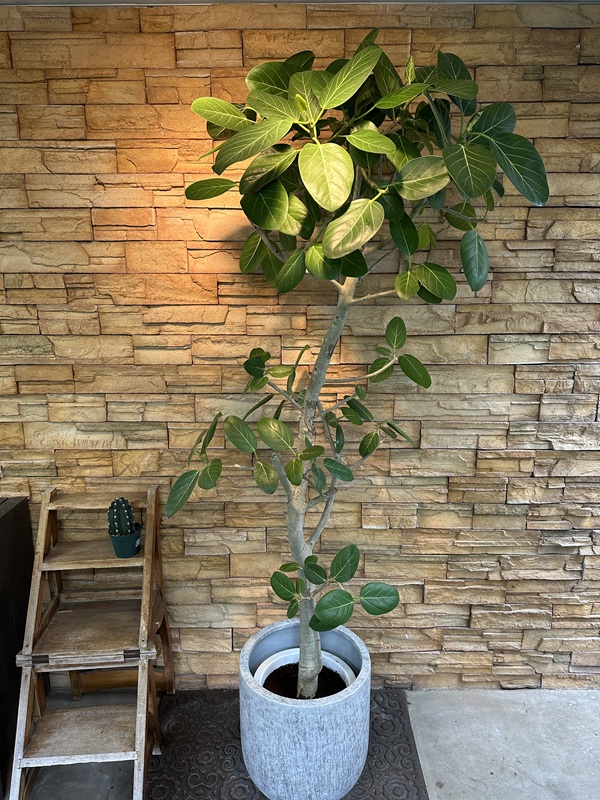フィカス・ベンガレンシスは現地では長寿の木として崇められていてとても生命力の強い植物です。幹から出てくる木根はどんどん地面に達して横に広がり大きく成長します。上品で落ち着いた雰囲気があり、贈り物としても人気の高い観葉植物です。 ゴムの木の仲間で育てやすく、室内にも寒さにも強い観葉植物。個性的な樹形が美しくリビングにも映えるグリーンです。