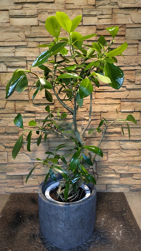 肉厚で光沢のあるたまご型の葉が印象的な観葉植物です。葉に傷をつけると白いあとが残ることから、原産地では葉っぱにメッセージや落書きを書いたりするそうですよ!株がしっかりしてくると白やピンクの花を咲かせます。