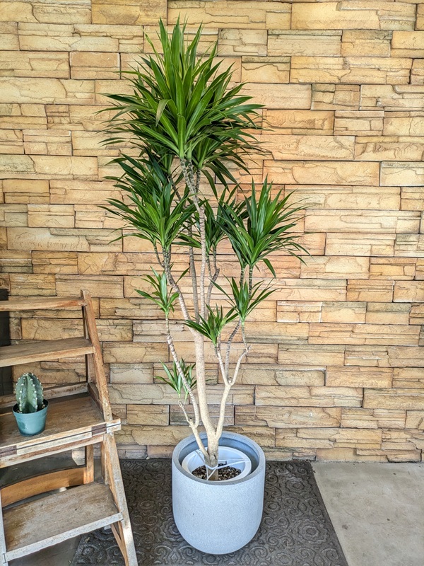ドラセナは熱帯アジア、熱帯アフリカにおよそ50種類が分布する常緑性の樹木です。「ナビー」はまだあまり見かけない新しい品種で、リフレクサに似た葉でコンシンネのようなスマートな樹形が特徴です。